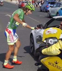 Main topic of conversation at the start: Peter Sagan’s (fully justified) hissy-fit in the Vuelta when he went postal on the medical car, a race motorbike and his own bike after his collision with a service motorcycle. There was some speculation that if a camera bike was in any way involved then the tape of the offending incident would most mysteriously disappear.