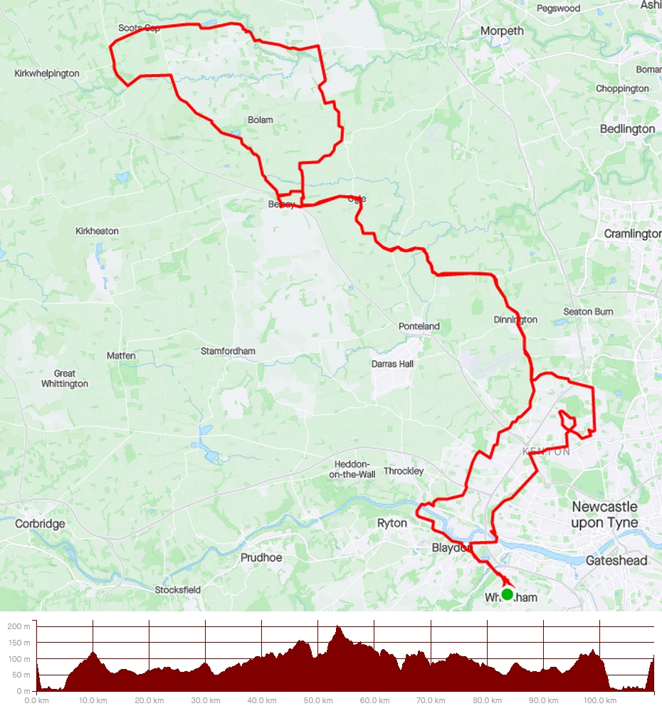 Sadly, a MTB CX event at Kirkley called for a change of plan and an adjusted route, but one that still retained the eastward charge, although it had to be somewhat shortened so we could call into the Belsay cafe instead.