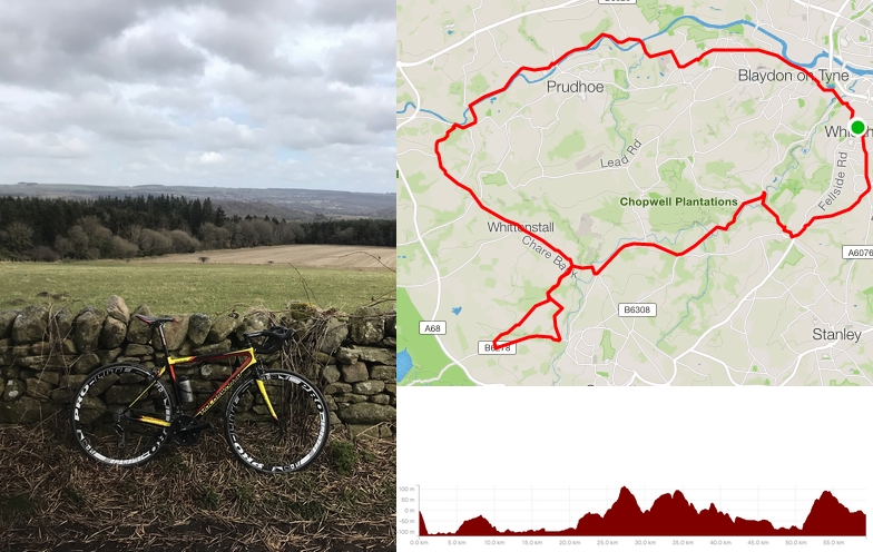 Back over the river at Stocksfield, I took the Broomley climb up through Shilford Woods. From there it was on to Whittonstall, perhaps the most hateful climb of the day – 2.5km up a slope that appears to get consistently steeper the closer you get to the top. It doesn’t help that, like the Ryals, it’s a straight road and you can see what’s coming from miles away as you approach.