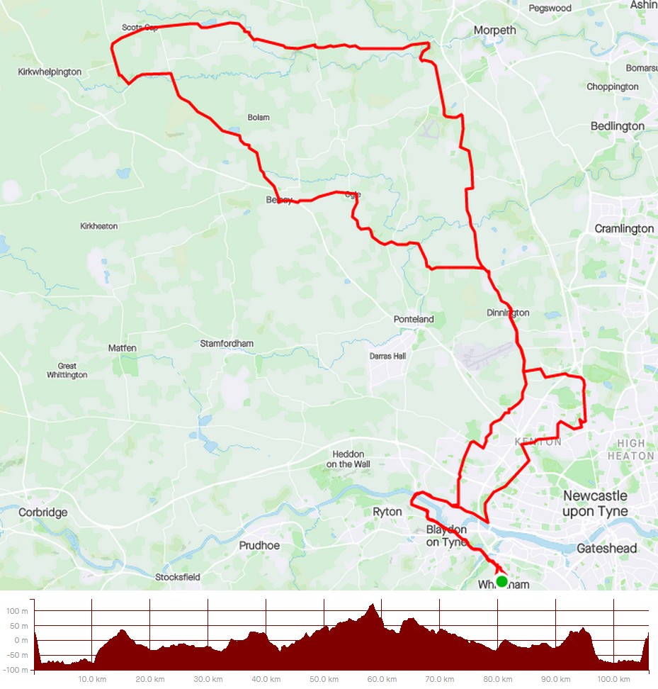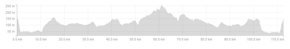 Total Distance:                                     112.7km/70.0 miles with 1,015 metres of climbing