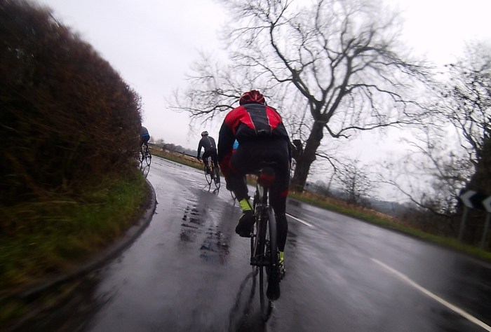 On the front with Crazy Legs through Dinnington, he amended the “all the gear, no idea” idiom to “all the gear, half an idea” to apply to a couple of bicyclists ahead of us and, as we caught and passed them, he cheerfully invited them to tag onto the back of our group for a tow.