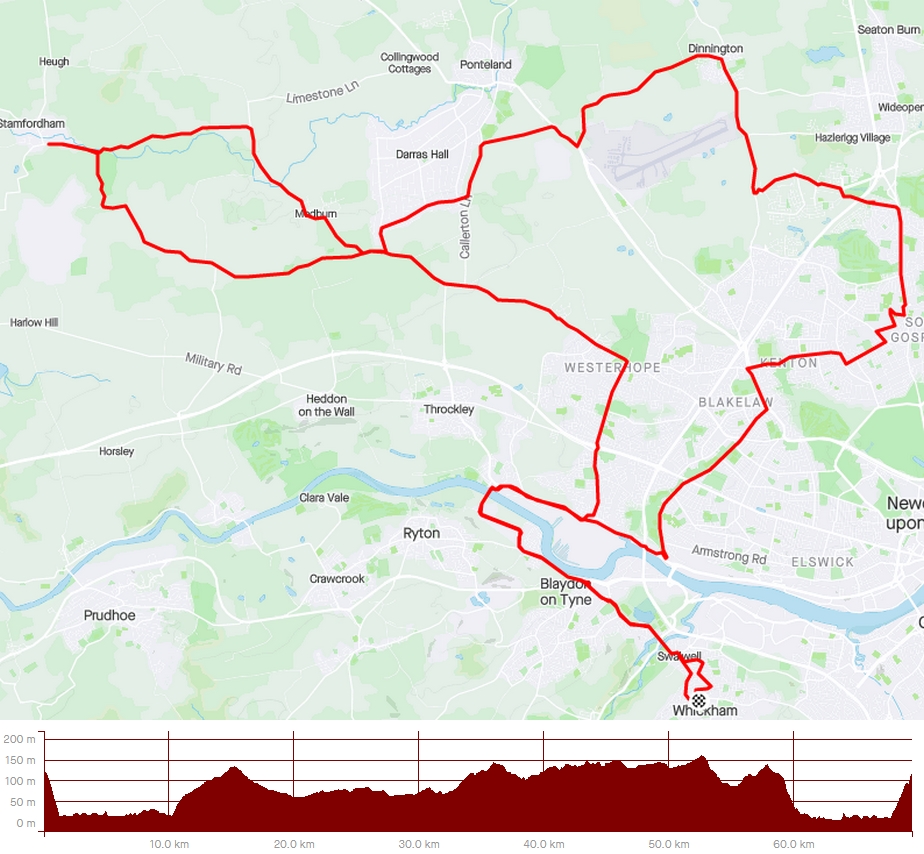 Off we went. through Dinnington, up Berwick Hill and out to Kirkley, entertained by Caracol whose been watching I’m a Celebrity … just to see how much (richly deserved) humiliation is heaped upon the head of sackless, hapless and repugnant Hatt Mancock. On the road to Ogle we finally ceded the front and I put the second part of my plan into operation, just hanging on as best I could. Even that was going to be no easy task though, the pace rarely dropped below 30kph, and I picked up 9 new Strava PR’s in the next 10km stretch.