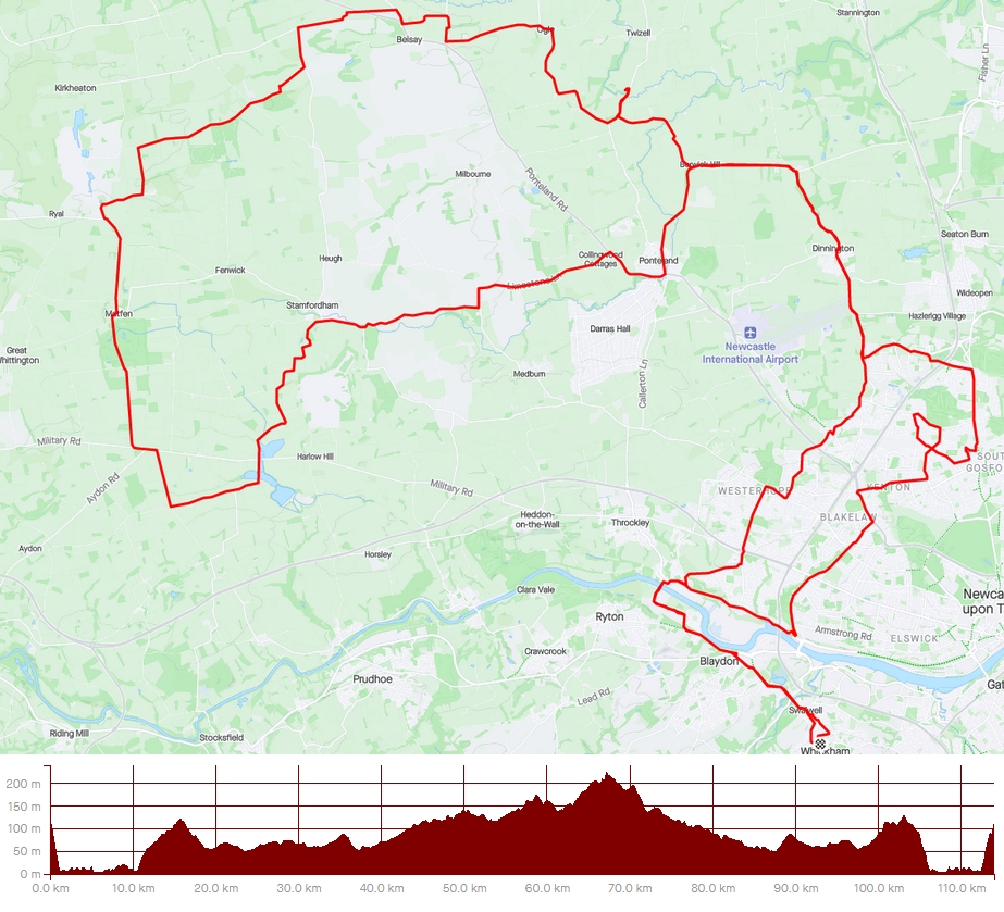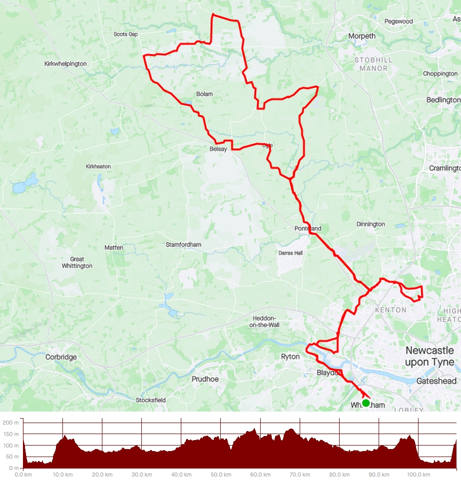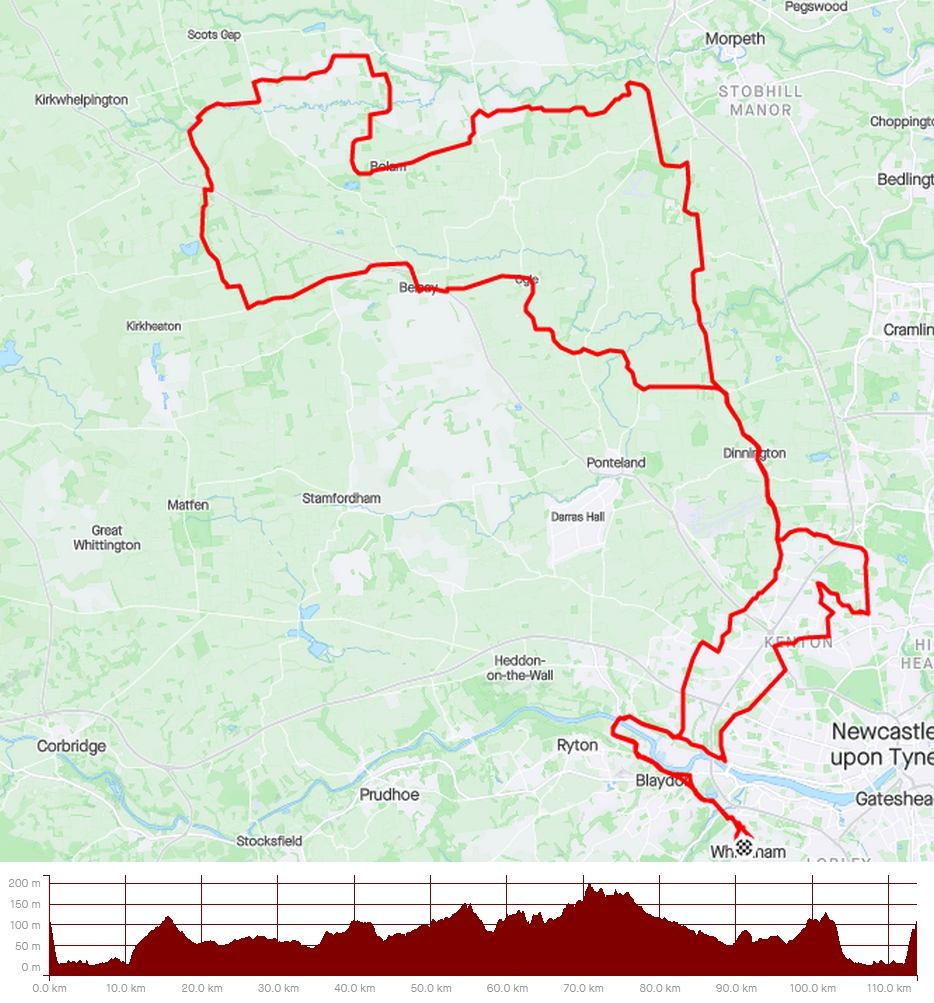 | Riding Distance: | 110km with 1,049m of elevation gain |