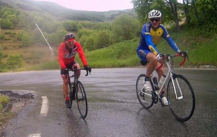 Then, Buster determines his derailleur is playing up. Shifting up the cassette is a decidedly hit-and-miss affair and then, after a bit of (supposedly) remedial fiddling, just a miss affair. Climbing the Alpe under the best of circumstances is a daunting prospect, doing it without leg-friendly, climbing gears sounds like utter madness, so Buster too departs for the local bike shops.