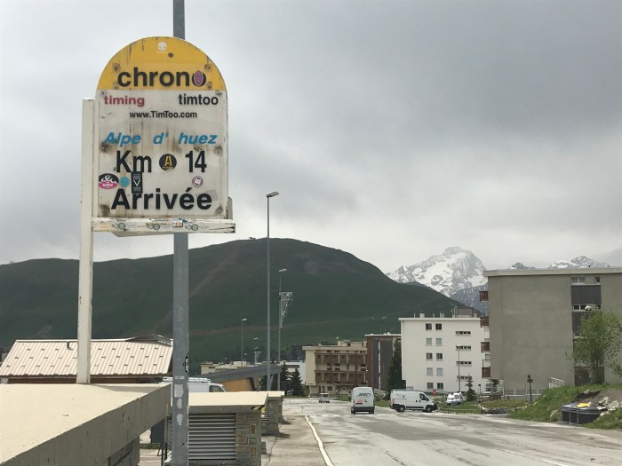 At the entrance to the campsite we’re passed by a camper van trailing the unmistakable odour of burning clutch. Ah, the traditional smell I’ve learned to associate with l’Alpe d’Huez. I’m confused when we turn left onto the main road though, heading away from the climb and out into the town.