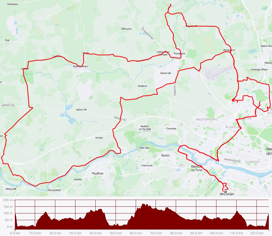 I had a good natter with Jake the Snake about university life and Tour de France predictions (neither of us being able to see past a Slovenian winner, or at all certain that two of Ineos’s main challengers, Geraint Thomas and Ritchie Porte, would make it to Paris without falling over.) We did our stint on the front, battling the headwind, before the route took a southbound turn and we dropped into the Tyne Valley at Wylam.